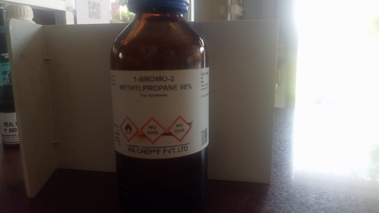 Synthesis chemical Lab is one of the best and leading supplier of chemicals wholesale and retail traders. Synthesis Chemical Lab is a one stop solution for your all kind of Chemicals and Scientific needs. Synthesis Chemical Lab are the supplier of 1-Bromo-2-Methylpropane - Synthesis Chemical Lab. 1-Bromo-2-methylpropane for synthesis. CAS 78-77-3, chemical formula (CH₃)₂CHCH₂Br. H225: Highly flammable liquid and vapour. P210: Keep away from heat, hot surfaces, sparks, open flames and other ignition sources.1-bromo-2-methylpropane is a colorless, flammable liquid with the following properties: Chemical formula: CH3)2CHCH2Br Molecular weight: 137.02 g/ml CAS: 78-77-3 Melting point -118 °C Vapor pressure: 41 hPa (20 °C) Solubility: 0.51 g/l 1-bromo-2-methylpropane is also known as iso-butyl bromide. It is used as a synthetic reagent to prepare 1-ethyl-1, 3-isobutylimidazolium bromide. tert-Butyl bromide (also referred to as 2-bromo-2-methylpropane) is an organic compound with the formula Me3CBr (Me = methyl). The molecule features a tert-butyl group attached to a bromide substituent. This organobromine compound is used as a standard reagent in synthetic organic chemistry. Synthesis Chemical Lab are supplying in all parts of South India, TAMILNADU, KERALA, KARNATAKA, ANDHRA PRADESH, TELUGANA COIMBATORE, POLLACHI, CHENNAI, OOTY, SALEM, MADURAI TRICHY, KARAIKUDI, NAGAPATTINAM.-Synthesis Chemical Lab.
